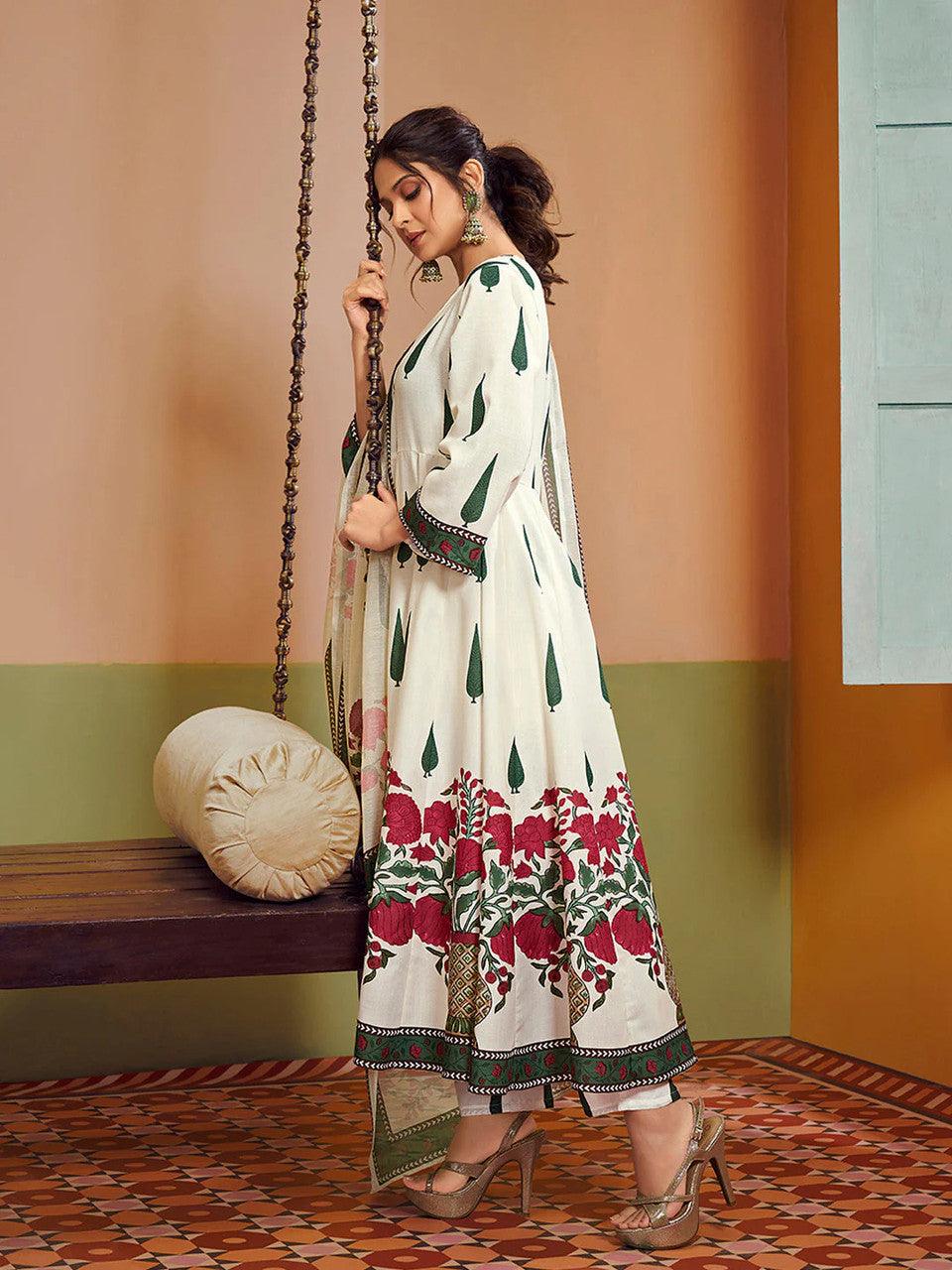 Cream Floral Anarkali Suit Set