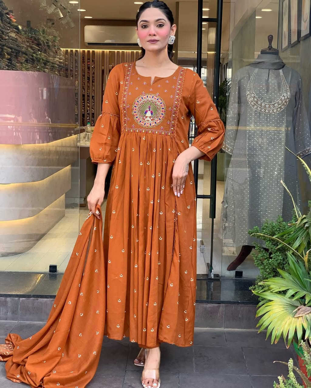 Rust Orange Hand-Embroidered Anarkali Set
